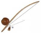a wooden bow which is about 4 to 5 feet long with a steel string that is